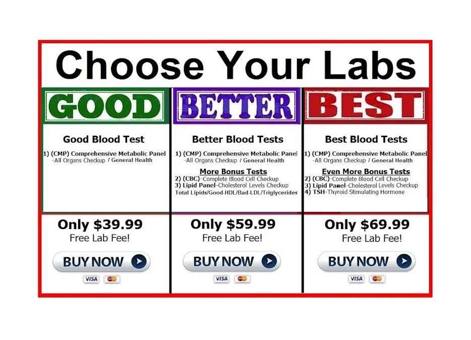 Order your labs online without a doctor, for only $49.99 and get a FREE Lab Visit.